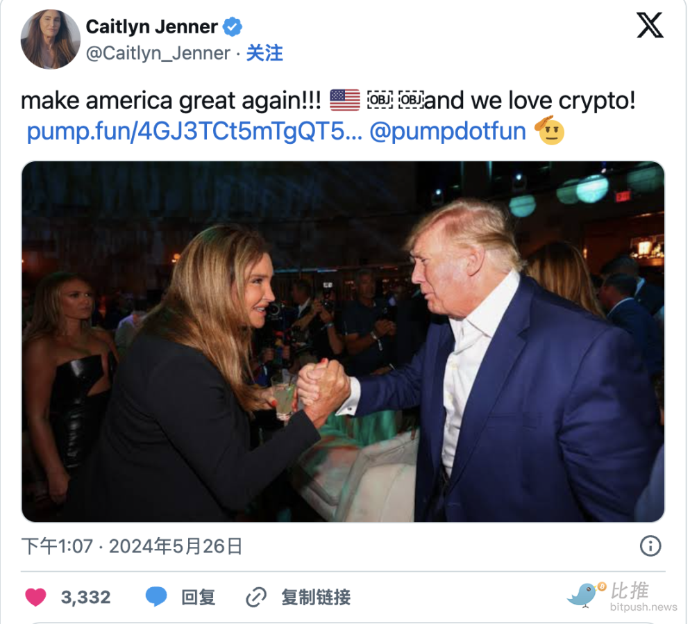 Pump.fun 火熱之際,2024 年 5 月,詹納攜手當時正積極籌備競選的川普,高調發行了自己的代幣。