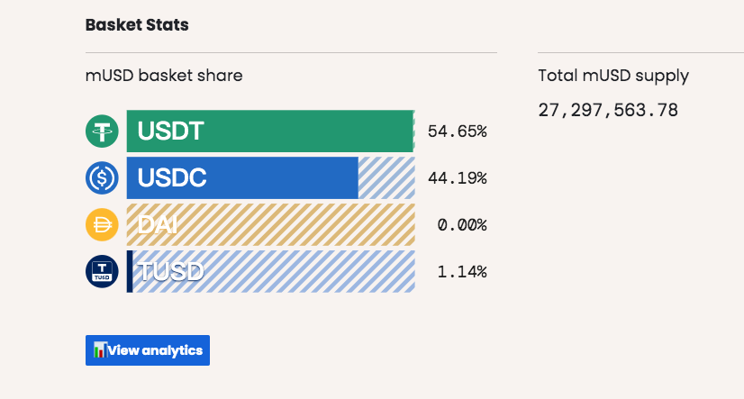 可以預見的是,一籃子 mUSD 的最終組成為 55% USDT + 45% USDC(因為它對單個資產的限制為55%),然後系統停止運行,不再有新的鑄幣 / 提款 / 交易,並不再產生額外費用(貸款利息除外)。