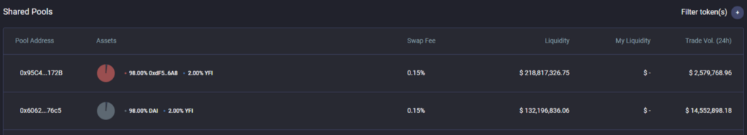 - 在 Balancer 池中存入 98% yCurve + 2% YFI 以挖掘額外的 YFI