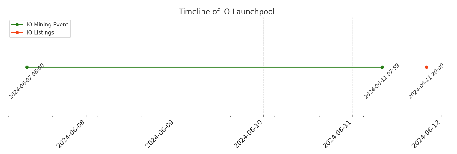 用戶可以在台灣時間 2024 年 6 月 7 日 8:00 至 2024 年 6 月 11 日 07:59,在 Launchpool 平台將 BNB 和 FDUSD 投入 IO 礦池中進行為期四天的新幣挖礦活動,以獲得 IO 代幣獎勵。