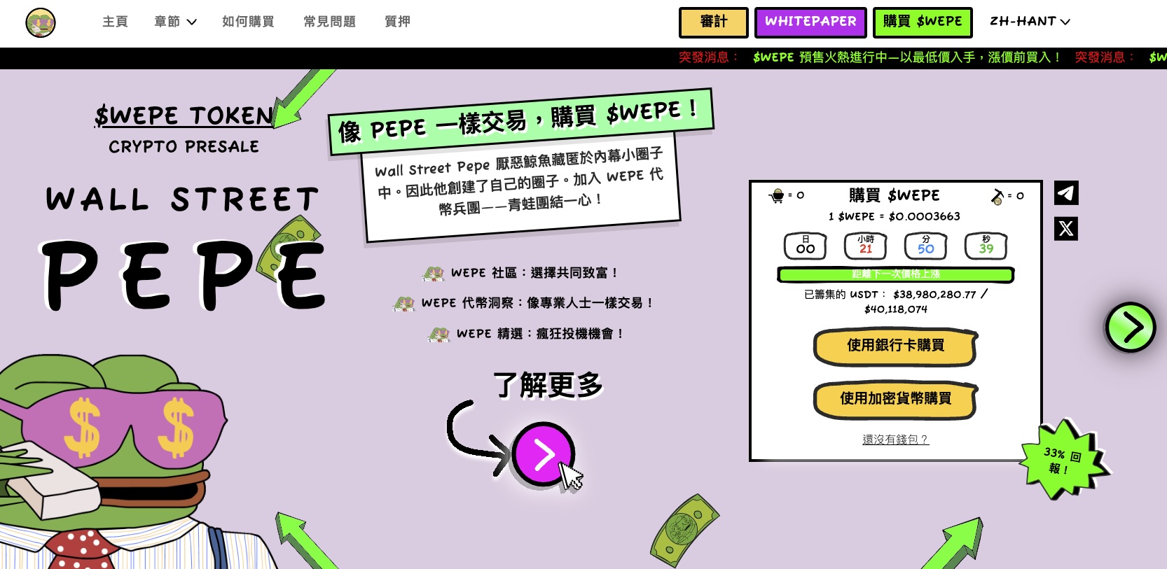 $WEPE 仍在預售階段,官方團隊預告將在預售結束後再上市DEX及CEX,投資者可進入官方網站、X 了解預售最新資訊。