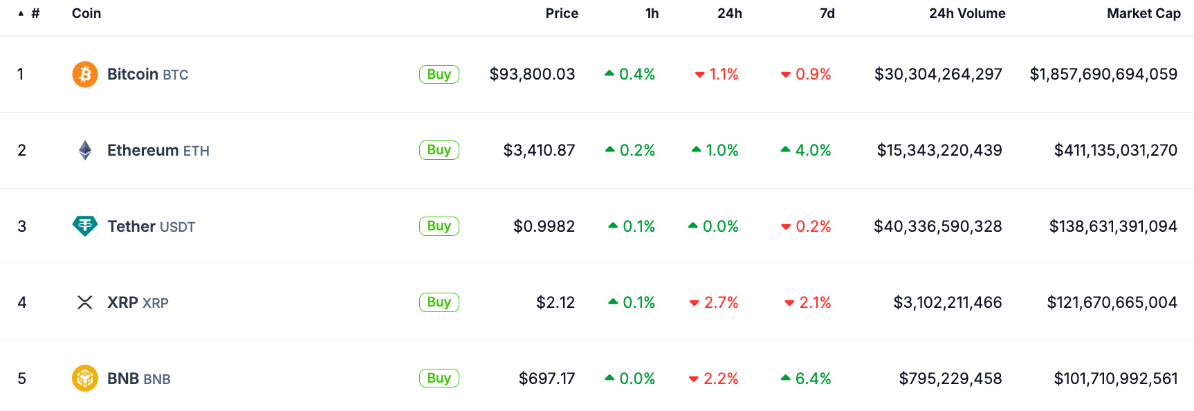 近期,相較比特幣盤整於 9 萬美元低位,以太坊走勢更為強勢。CoinGecko 數據顯示,以太坊突破 3,400 美元,現報 3,410 美元,近 24 小時上漲 1%、近 7 天上漲 4%。相較之下,比特幣近 24 小時下跌 1.1%,今日稍早甚至一度跌破 9.3 萬美元,插針 92,868.96 美元。