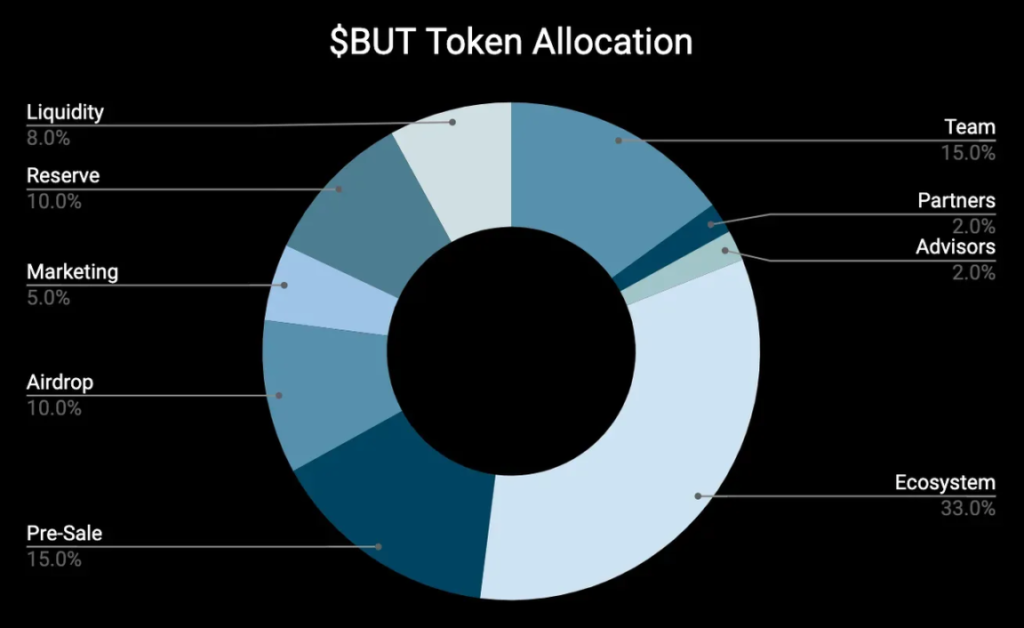 代幣名稱:BUT,總量為 10 億枚。BUT 將可以質押為 deBUT,獲得協議治理權,參與 BUT 排放。提前退出質押的罰金也將重新分配給 deBUT 持有者