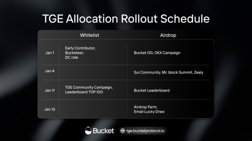 Bucket 的積分排行榜將持續至 1 月 11 日。Airdrop Farm 活動將持續至 1 月 13 日,目前正是最後的上車機會。