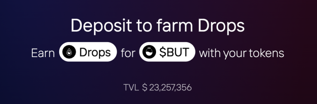 在 Airdrop Farm 活動中,除了存入 SUI、haSUI、vSUI、BLUE、SEND 等 Sui 生態代幣外,還能直接存入 USDC、wUSDC 等穩定幣進行空投挖礦獲得 Drops,Drops 將在 TGE 後兌換為 BUT 代幣。
