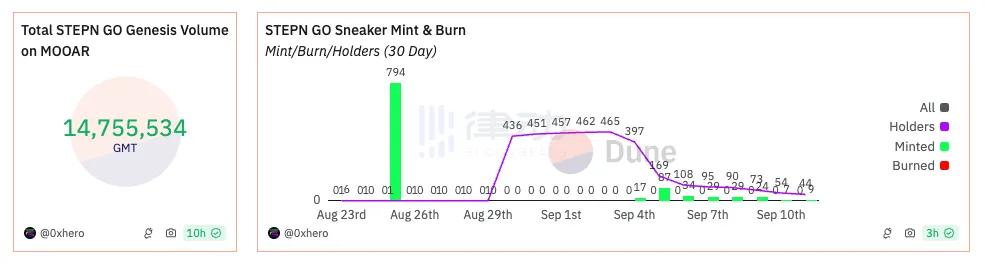 這一點也可以在資料看出,在過去 30 天內,STEPN GO 的新使用者增量從最初的 400 多人減少到如今的 50 人左右。