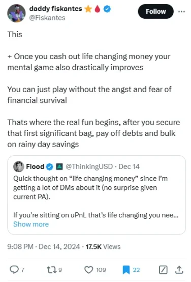 我經常思考達到「逃逸速度」意味著什麼:即你的財務狀況允許你承擔有計劃的風險而不會危及你的生活穩定性。一旦你達到了那個水平,那時你才能開始真正玩遊戲並全力以赴。