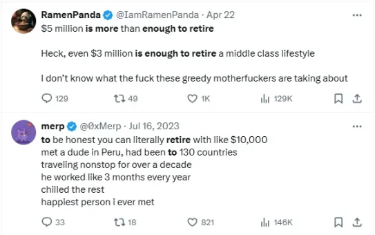 作為一個一直在考慮退休的人,我經常想:多少錢才算足夠?雖然媒體經常吹噓這需要一個天文數位,但我相信,對於我們許多人來說,100 萬到 200 萬美元可能才是最佳選擇。原因如下,讓我們首先從 TradFi 的角度來看待這個問題。