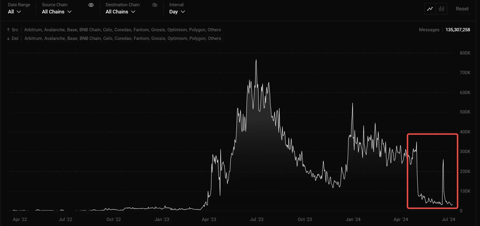 跨鏈訊息較空投前減少約 80%