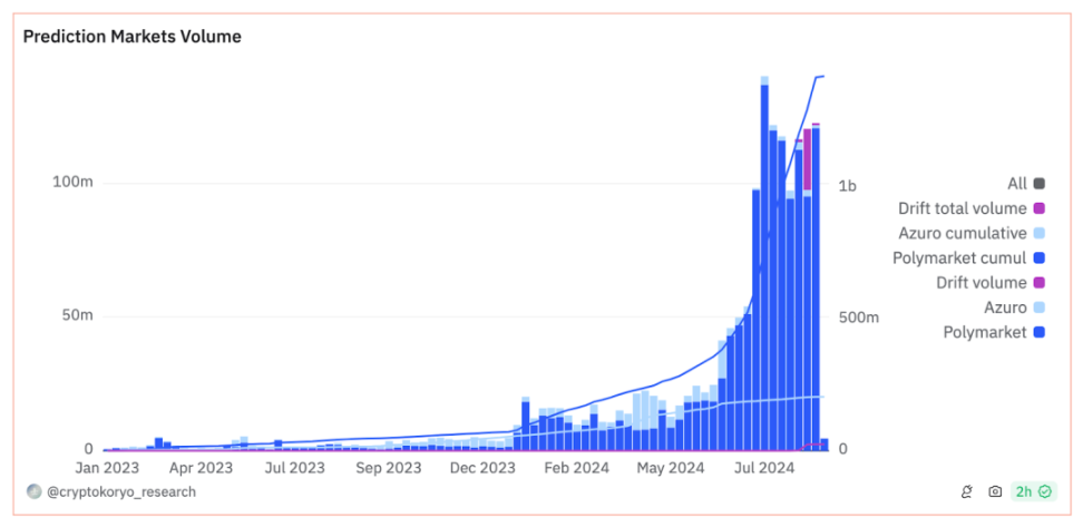 目前,Polymarket 已經處理了超過 14 億美元的交易量,成為美國總統大選等事件的重要投注平臺。