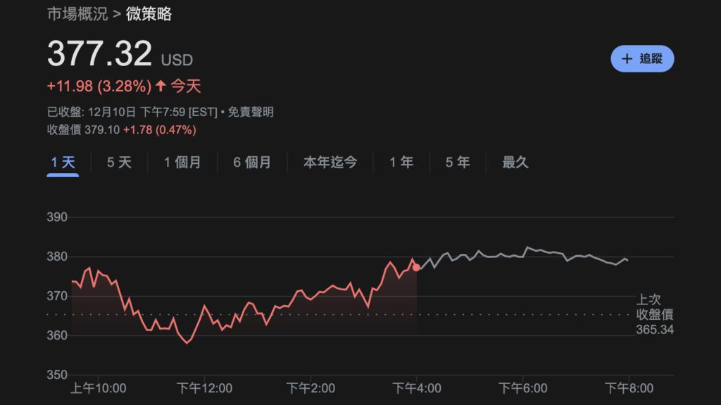 或受此激勵,儘管昨日比特幣是下跌的狀況,MicroStrategy 股票收盤仍上漲 3.28%。