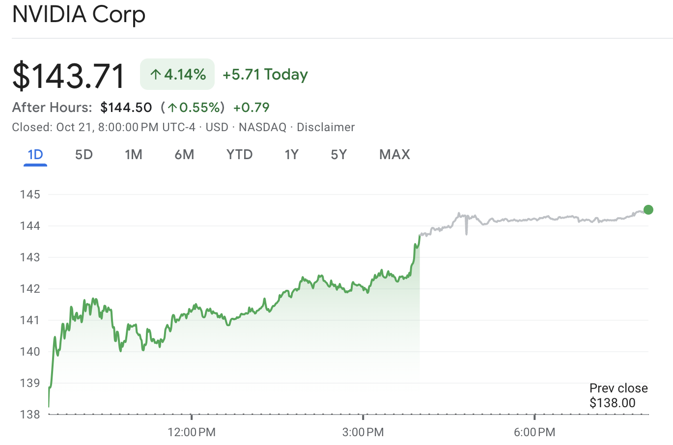 AI 晶片巨頭 Nvidia 的股價 21 日逆勢大漲 4.14%,收於 143.71 美元,市值首次突破 3.5 兆美元,成為史上第二家達到這一里程碑的公司,緊追市值約 3.6 兆美元的蘋果。Nvidia 股價強勁表現的背後,是由什麼因素推動?
