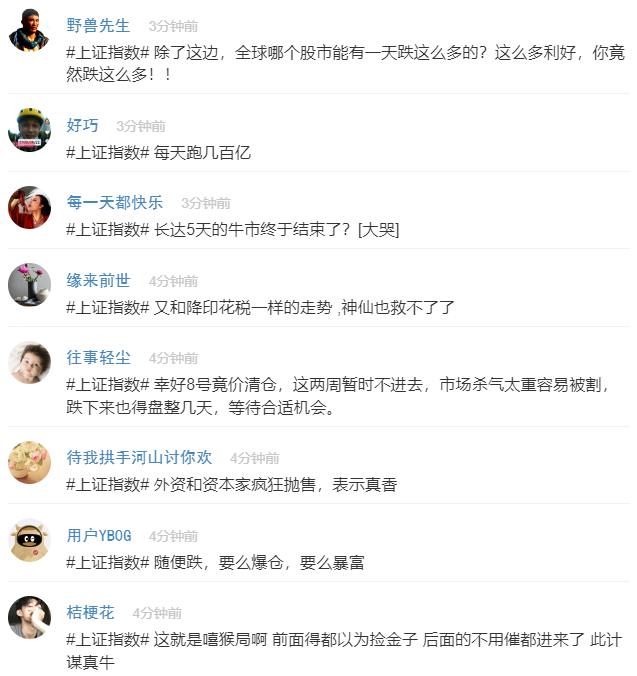 中國 A 股在昨日的慘淡表現,無疑為那些剛進場的股民潑了一盆冷水,不少股民都在網上抱怨:「除了這邊,全球哪個股市能有一天跌這麼多的?這麼多利好,你竟然跌這麼多?」、「長達 5 天的牛市終於結束了?」、「外資和資本家瘋狂拋售,表示真香」…