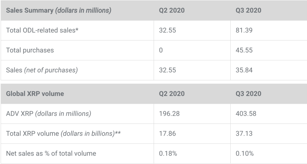 除了 ODL 的銷售創佳績之外,XRP 在 Q3 的交易量也有所增長。