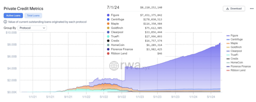 基於區塊鏈的私人信貸雖然目前尚處於起步階段,但顛覆者已開始在這一領域取得成功:Figure Technologies 是美國最大的非銀行房屋淨值信貸額度(HELOC)貸款機構之一,貸款發放量達數十億美元。Centrifuge 和 Maple Finance 等 Web3 原生專案與 Figure 等公司一起,促成了超過 100 億美元鏈上信貸的發放。