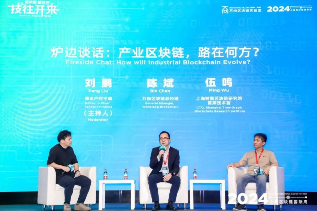 在《爐邊談話:產業區塊鏈,路在何方?》圓桌討論中,騰訊財經主編劉鵬擔任主持人,與萬向區塊鏈總經理陳斌和上海樹圖區塊鏈研究院首席技術官伍鳴共同探討產業區塊鏈的發展現狀和未來趨勢。