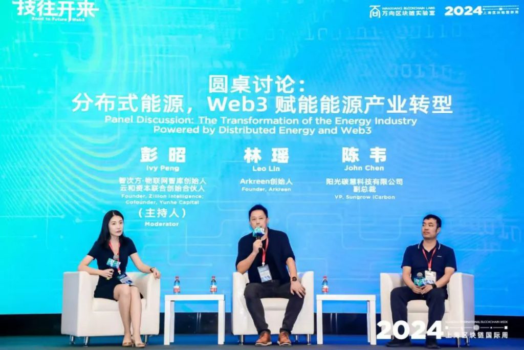 而在 「圓桌討論:分散式能源的革新之路 ——Web3 技術引領能源產業新轉型」 上,智次方・物聯網智庫的創立者及雲和資本的聯合創始合夥人彭昭,與 Arkreen 創辦人林瑤、陽光慧碳科技有限公司高階副總裁陳韋一起,聚焦分散式能源探索區塊鏈如何賦能能源行業轉型。
