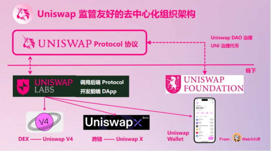 儘管 2024 年 4 月 10 日,Uniswap Labs 收到了來自 SEC 的 Wells Notice,告知 SEC 可能對 Uniswap Labs 採取訴訟等監管執法行動,但是更多的是 SEC 對其加密交易業務性質本身的定性,而非去中心化的法律架構的不合規。
