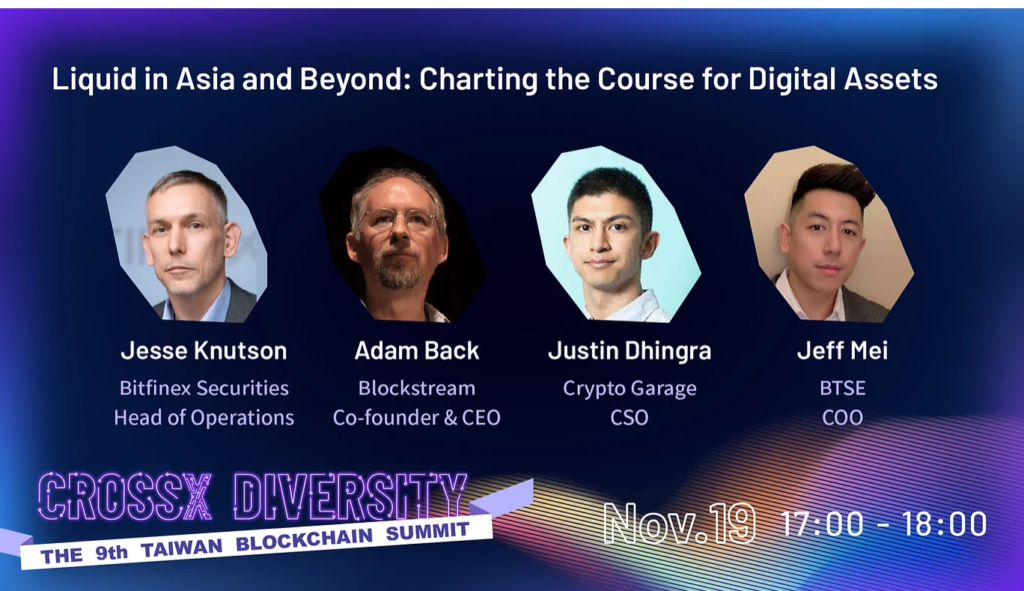 邀請Bitfinex 證券營運長 Jesse Knutson、Crypto Garage CSO Justin Dhingra、BTSE COO Jeff Mei 一同與Adam Back討論亞洲數位資產的潛力。
